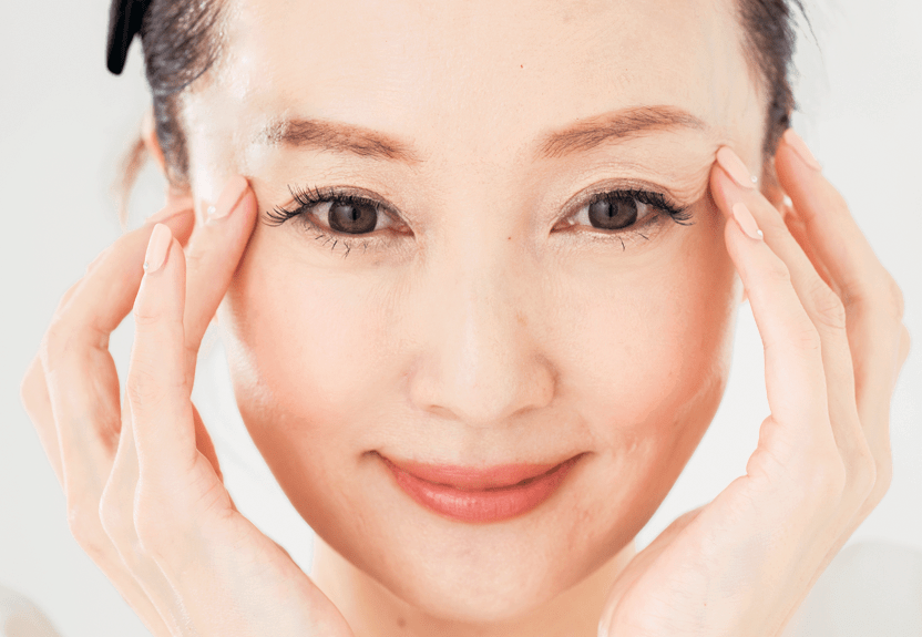「朝晩のスキンケアのときに、横に広がりがちな鼻筋や小鼻、シワやたるみの出やすい目元を薬指でマッサージすると、表情がいきいきとして、若々しく見えますよ」