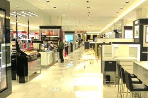 「1階 化粧品売場」ミレニアル世代を意識し、スキンケアブランド中心の展開から、メイクアップ系ブランドを導入。都心店にも引けをとらない計30ブランドでのカウンター展開は、多摩地区最大級。