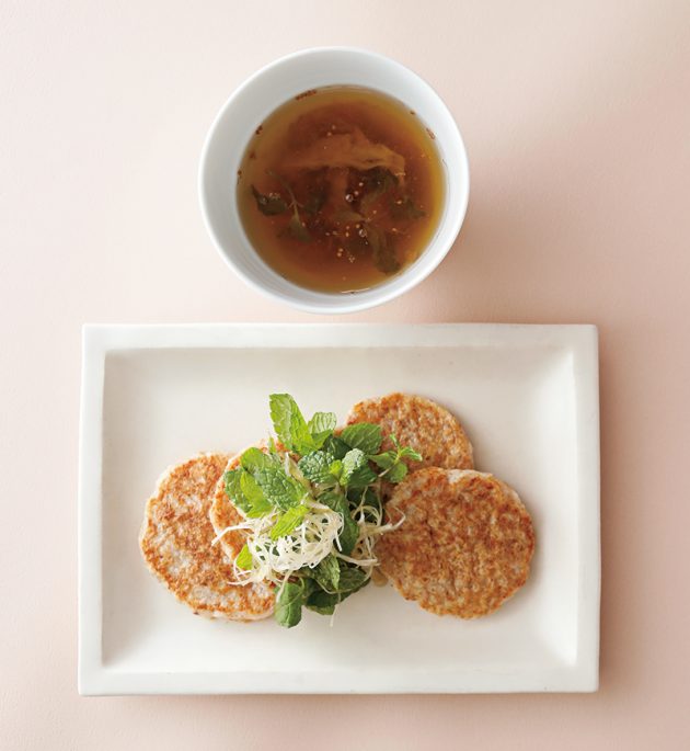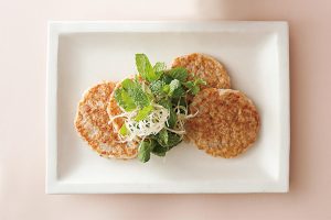 長芋のおやきミントと白髪ねぎ添え
