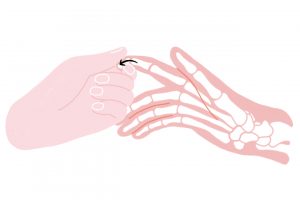 当てはまる不調があったり、何も該当しなくても手全体が硬かったり、関節に違和感がある場合は、周辺の筋肉や靱帯などが硬くなりつつある可能性が。手指まわしの後でどう変わったかを確かめてみよう。