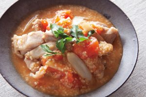 便秘解消や温活効果も。鶏肉とごぼうと雑穀のトマト煮【松見早枝子さんの雑穀レシピ】。