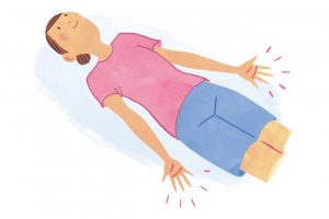 仰向けに寝て、両手のひらを握ったり、開いたりする。自分のペースでリズミカルにグー・パーと、20回行う。