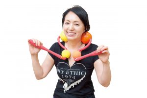 耳の下から鎖骨にかけて伸びる胸鎖乳突筋(きょうさにゅうとつきん)に着目し、ここをほぐして美しい姿勢を保ち、肩こりの解消に。大小2つのボールが胸鎖乳突筋の始点と終点に当たり、ハンドルを押し下げるだけで刺激を送って鍛えられます。(問 ピッコルーナ TEL.03-6273-1200※平日のみ)