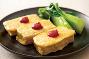 豆腐とはいえ主菜として楽しめる一品。食べ応え充分、お弁当にもぴったりです。ちなみにカルシウムの含有量から見れば、絹ごしより木綿に軍配。