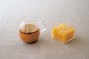 ごまと麹の粒が、いかと緑黄色野菜によくからむ。甘酒のとろみ、昆布だしのような柔らかい旨みがプラス。