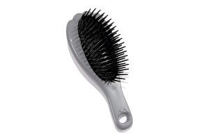幅広いブラシ面に長短2種類のピンを植毛。髪のもつれをときほぐし、毛先までツヤめく髪作りにお役立ち。「頭皮にぴったりとフィットするアーチがすばらしい。ハンドルがついていないので持ち運ぶのにも便利です」と、まさに毎日のこまめなケアにうってつけのブラシだ。