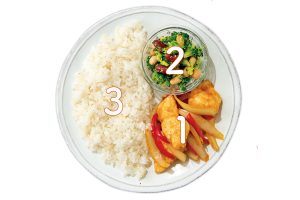【直径24cmの皿に盛り付けて覚える、〈主食3:主菜1:副菜2〉のバランス】