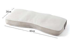 「上半身全体を隙間なく支える設計の大きな枕。包み込まれるような柔らかい感触で、首・肩・背中までラクになります」。シングルベッドとほぼ同じ幅で寝返りで頭が落ちることがない。