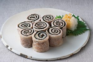 海苔巻き豚のレンジ蒸しと、とろろ杜仲茶おすまし【胆汁酸ダイエットの献立】