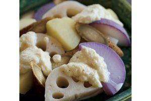 ボウルにすべての材料を入れてよく混ぜ合わせる。冷蔵保存で3日。れんこん、にんじん、じゃがいも、ごぼう、紫大根などを蒸したものにかける。