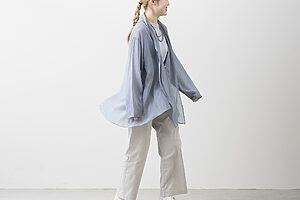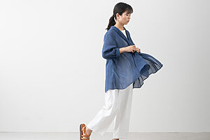 吸放湿性があってムレにくく、快適に着用できる生地を使っています。独特の清涼感があり、薄手で軽く、さらっとした質感なので、汗ばむような季節にぴったりの羽織ものだと思います。