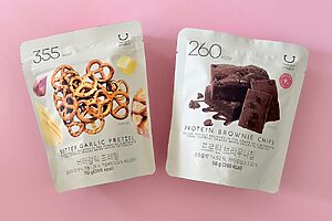 左:「バターガーリックプレッツェル」397円 右:「プロテインブラウニーチップ」397円