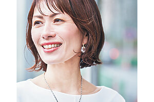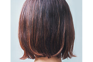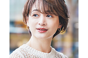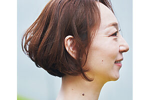 髪質の変化を感じてから、クセが出てもまとまりやすい重めボブが定番という鈴木さん。「ショートボブから肩につくボブまで気分で変えています」。今のあごラインのボブは毛先にヘアオイルをもみ込むと、元のクセが重なりふんわり決まる。さりげなくアシンメトリーな形もお手本にしたいバランスだ。