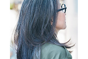 「切ったのは1カ月前。暖かくなってきて変えたくて」と相原さん。通い慣れたサロン『エマ』で担当のエミーさんに軽くしたいとリクエスト。前髪に隙間を入れ、毛先は動きが出やすいようレイヤーを加えた。「ストレートアイロンを通すだけできれいに動きます。今朝はヘアバームでセットしました」