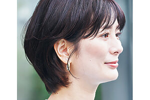 あご下のやや重めなボブ。クセ毛が気になるという武田さんはボブにしてから髪がぐんと扱いやすくなったそう。今日のような外ハネも内巻きのヘアもどちらも作りやすいのも魅力で、服装の幅も広がったという。「一層マニッシュな格好をするようになりました。ニット帽やキャップもバランスよく決まります」