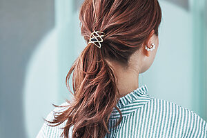 手ぐしでラフに結び、オイルで束感とツヤも出して