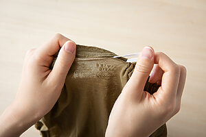 肌が弱い方も安心して着られるよう、サイズや品質表示は直接プリントしてあるので、タグが肌に当たりません。また、ウエストの縫い目を肌に直接当たらないよう、外側にしました。ウエストのゴムは締め付けすぎず程よいフィット感にしてありますが、ゴムの入れ替えが可能なので、自分好みのフィット感に変えられます。