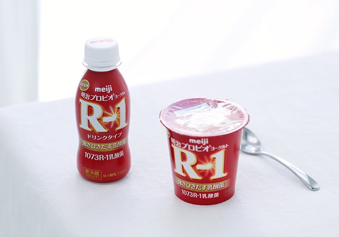 「強さひきだす乳酸菌」を標榜するR-1乳酸菌を使用したヨーグルト。R-1乳酸菌のつくりだすEPS(多糖類)に、その秘密があると考えられている。まろやかな味わいで、毎日おいしく続けられる。