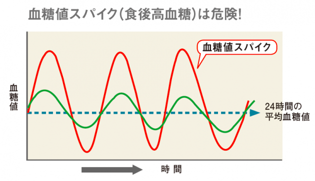 金本 そうです。食後の短時間にだけ血糖値が急上昇し、急下降することを「血糖値スパイク」(グルコーススパイク)と言って、血管を傷つける原因と言われています。動脈硬化が進行しやすくなり、脳梗塞、心筋梗塞などのリスクも高まります。この幅を小さくするには、1日3食がいい食べ方だと実証されています。また血糖値が急に上がると、それを下げようとインスリンが分泌されます。インスリンは糖を脂肪として溜め込むので、太る原因になります。