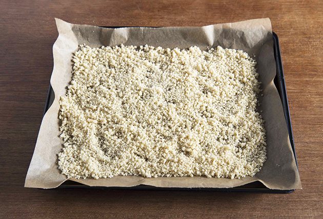 ほぐして焼き、を2回繰り返します。低温で長時間焼くことでアルコール分が飛び、酒粕臭さがなくなります。また、保存性も高くなるんです。保存容器に入れるときは、完全に冷めてからにしてください。