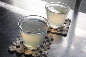 ② はちみつとワインの寒天ゼリー液をつくり、粗熱を取って、1のグラスに均等に注ぎ、ひと混ぜする。粗熱を取り、固まったら、冷蔵庫で冷やす。