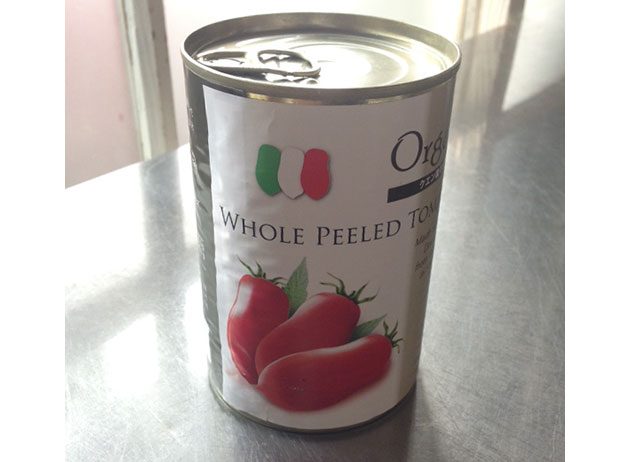 オーガニックトマトを使い、クエン酸を加えずに缶詰にした有機ホールトマト缶。酸っぱくなく、甘みを加える必要もありません。