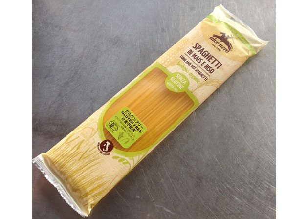 今回使ったのは、とうもろこし粉と米粉でできたグルテンフリーのパスタ。アルチェネロ有機グルテンフリー・スパゲッティです。お湯をいつもよりたっぷりめに沸かし、海塩も1%より少し多めに入れて茹でるのがコツです。