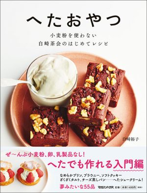おやつ作り初心者大歓迎の、白崎さんの新刊が出ます。タイトルは、『へたおやつ 小麦粉を使わない 白崎茶会のはじめてレシピ』、好評発売中です。