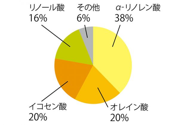 「カメリナオイルに約40%含まれるオメガ3系のα‐リノレン酸が脂肪燃焼を促すと言われています。ほかに、オメガ9系のオレイン酸を20%含んでいるのですが、実は、オレイン酸は、腸の蠕動運動を促進する、ダイエットには欠かせない脂肪酸。その点、1本のオイルで、代謝も上げてくれて、かつ腸内環境もよくしてくれるというダブル効果が期待できるというわけです」とYUKIEさん。