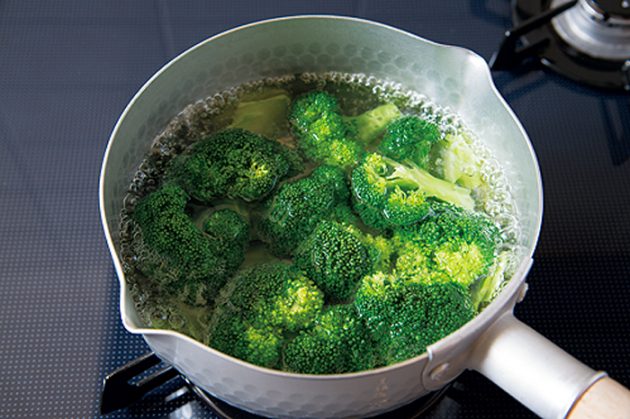 ゆでる際は、ブロッコリーが浸る程度の水の量でOK。流れたうま味もだしとして利用する。