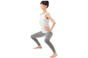 大きく開脚したスクワットで上半身&下半身の筋力を養う。《3〜10回》