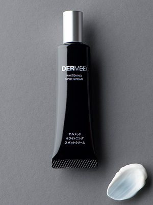 気になるシミに、ピンポイントで美白ケアができる、デルメッドの人気アイテムがホワイトニング スポットクリーム。国内外で広く使用されている美白成分コウジ酸に、無理なくターンオーバーを促すサリチル酸を配合。ダブルの有効成分でアプローチ。コウジ酸は、シミの発生経路を3カ所でブロックするだけではなく、糖化による黄ぐすみにも働きかけることがわかった。のびがよく、ぴたっと肌になじむテクスチャーの評価も高い。
