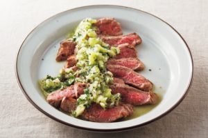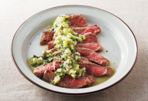 良質なたんぱく質と亜鉛も含まれる牛の赤身肉。ビタミンCが豊富なキウイをソースにして添えると、さわやかさがプラスされるうえ、相乗効果が望める。