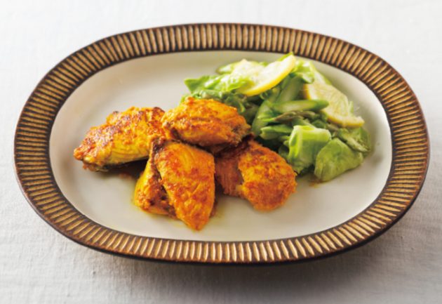 鰆のターメリックソテー キャベツとアスパラの浅漬け添え