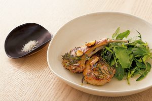 3 小皿に塩を盛り、食べるときにふる。「骨つき肉は、見た目にボリュームがあるし、食べるのに時間がかかって満足感が得られます」
