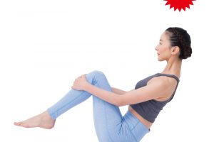 (2)背中の上部までしっかり床に着くまで転がったら、転がる反動を使って起き上がり、そのまま再び後ろに転がる。10回。
