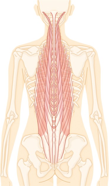 腰の動きのポイントとなる筋肉は、背骨に沿う脊柱起立筋。