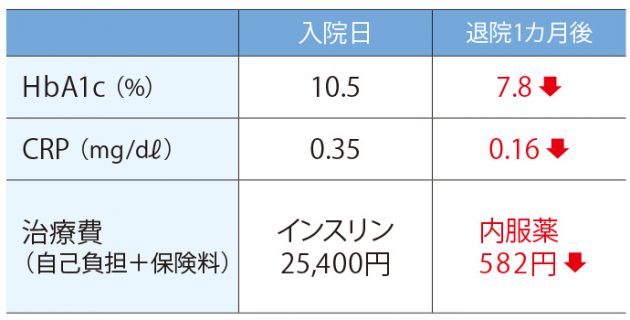 「これは大変!とすぐに歯科で歯周病の治療を行ってもらいました。入院当初はインスリン注射を毎日4回打ち、食事制限をしても血糖値は200〜300mg/㎗台でしたが、歯周病の治療が終わるころには、血糖値がするすると低下。インスリン注射の量も減り、そのうちゼロに。退院時には飲み薬1種類だけになったんです」