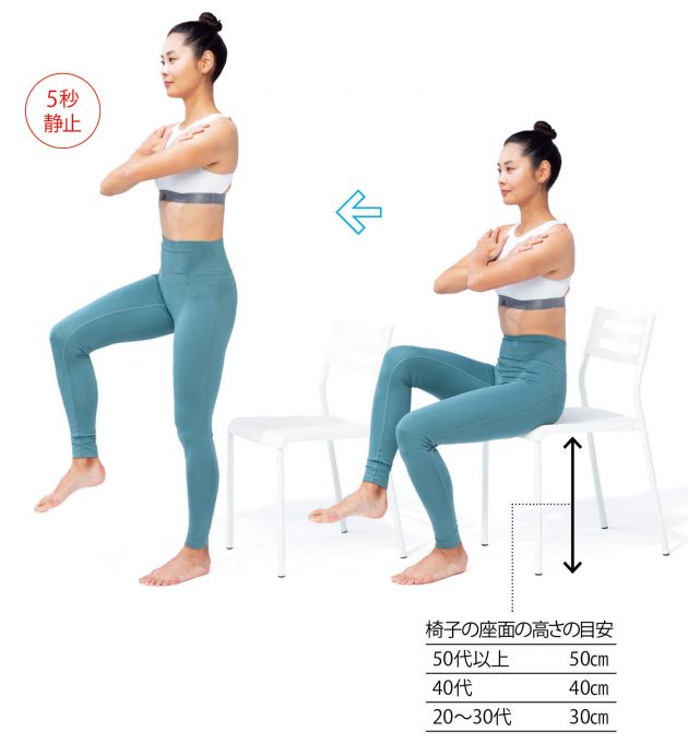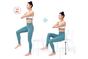 【椅子の片脚立ちテスト】反動をつけずに片方の脚で立てる?