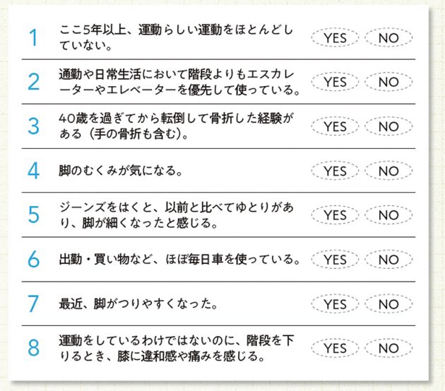 【生活習慣で筋力チェック】下の質問、YESの数はいくつ?