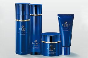 使うたびに素肌を上質な潤いで満たし、ハリと艶やかな輝きを重ねるCPコスメティクス最高峰(*2)ライン“ソワーニュ フィエルテ”。希少なウバ茶の新芽から抽出したCPコスティクスオリジナル保湿成分、ウバ茶SVエキスを配合。左から、ソワーニュ フィエルテ ソフニング スキン クレンジング n AL 130g 9,000円、同モイストプログレス ローション d MD/ c MC 200mL 9,000円、同コンセントレート フェイシャル マッサージ n AL 100g 8,500円、同コンセントレート フェイシャル マスク n AL 100g 8,500円。すべて医薬部外品。*2 CPコスメティクスによる。