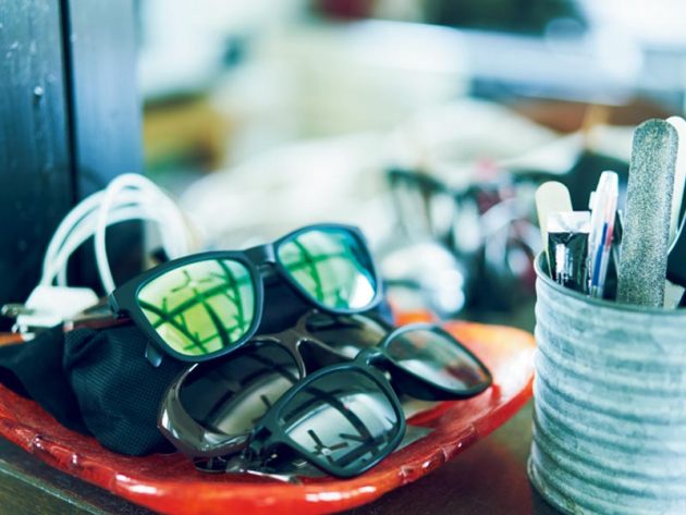 ビーチでも雪山でも欠かせないサングラス。いつでも手に取れるように数種類がキッチンカウンターに。