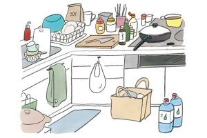 食を司る場所は気持ちの安定度が直接表れる。気持ちが不安定な状態では、あとで片づけようと先延ばししてキッチンがカオスに。