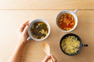 お湯を注ぐだけで簡単に楽しめるフリーズドライのスープは活躍の場もさまざま。