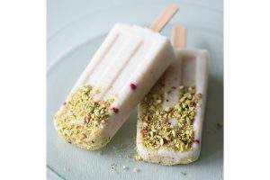 2.ピスタチオをみじん切りにし、型から抜いたアイスバーにまぶす。