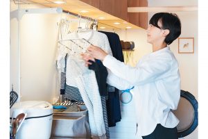 「洗濯機付近で洗濯物をいったんハンガーなどに吊るしたほうが、ベランダで作業するより楽チンです」(本多さん)