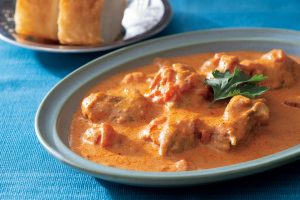 ヨーグルトでマリネした柔らかな鶏肉と、はちみつのまろやかさがクセになる、マイルドなチキンカレー。生クリームは最後に混ぜ合わせて。