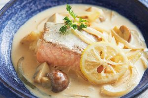 塩締めサーモンのレモンクリーム煮【野本やすゆきさんの魚の「サク」活用レシピ】
