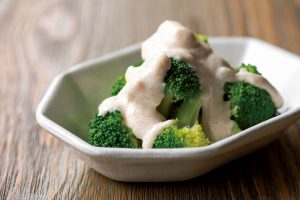 明太子を調味料感覚で入れ、レモン汁とオリーブ油で味を調えた白和えは、茹でたブロッコリーはもちろん、和食にも洋食にも合います。