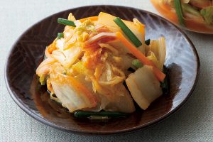 「白菜に塩をして水気を絞って、コチュジャンやごま油、昆布茶などで和えるだけ。白菜の代わりに大根でも作れます」